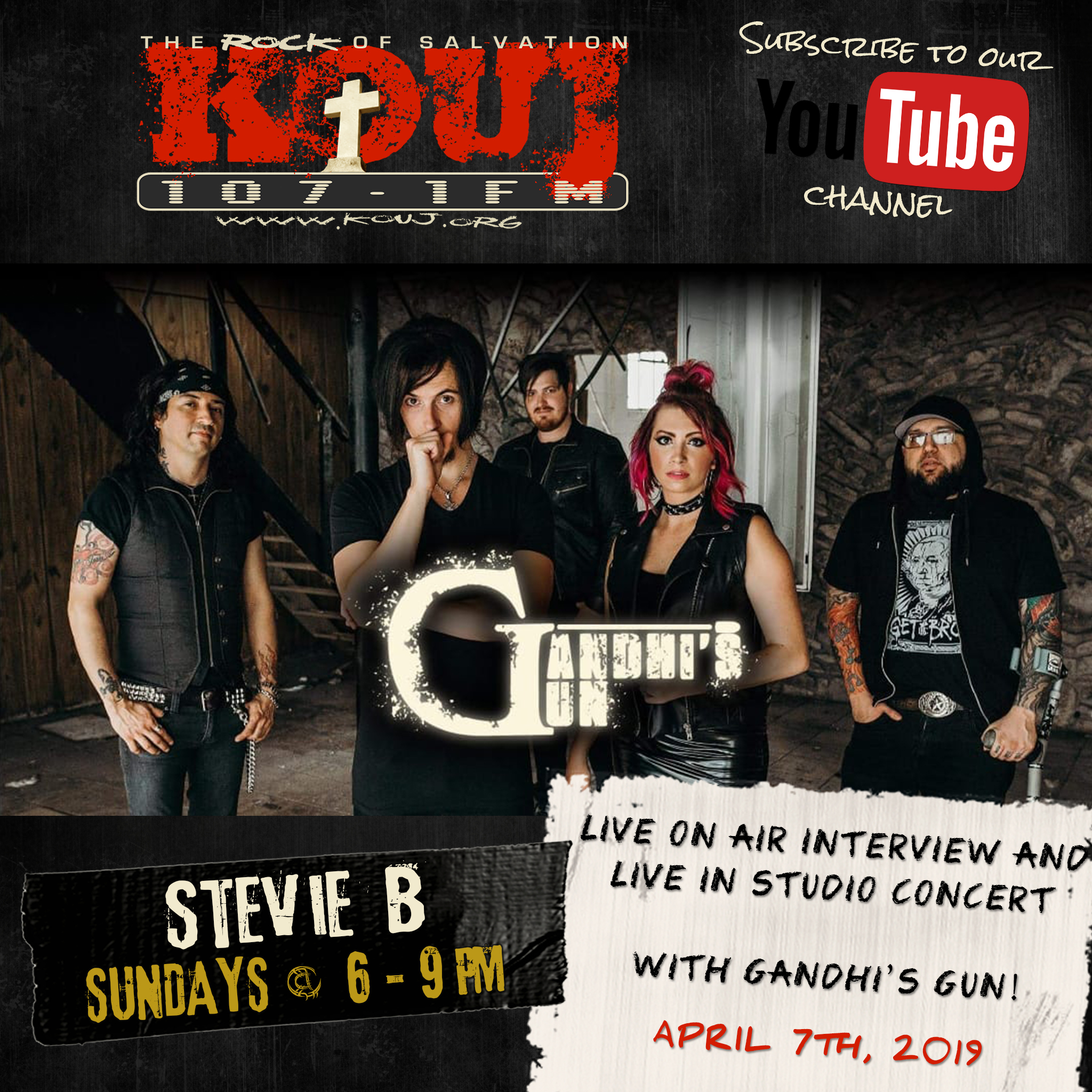 Gandhi's Gun will be Interviewed live on 107.1 KOUJ's Backstage with Stevie B They will play a live in studio concert. .