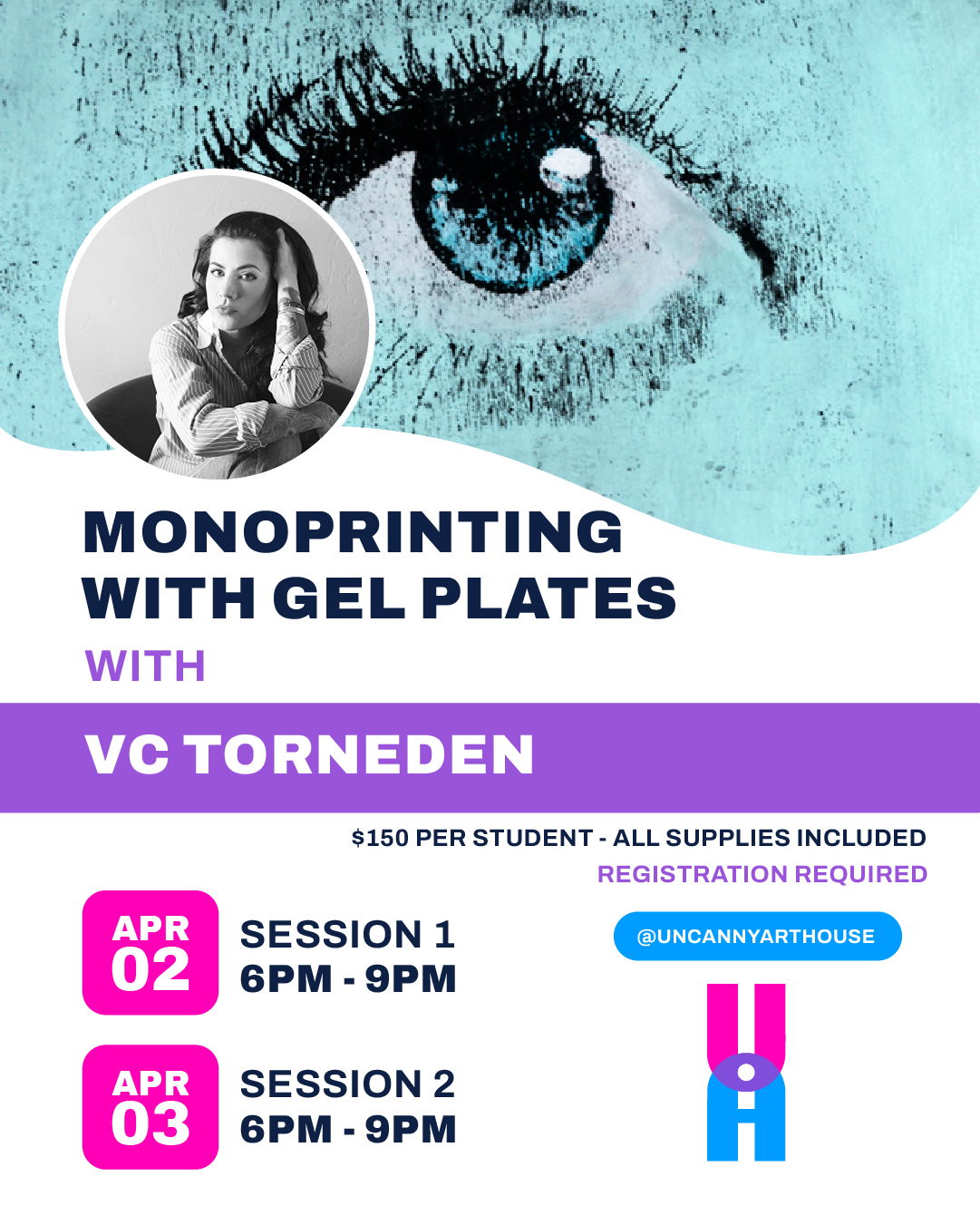 VC Torneden is a multidisciplinary artist working in painting, drawing, printmaking, and photography, with formal training from the University of New Orleans and Memphis College of Art. Their teaching emphasizes experimentation and playful process.