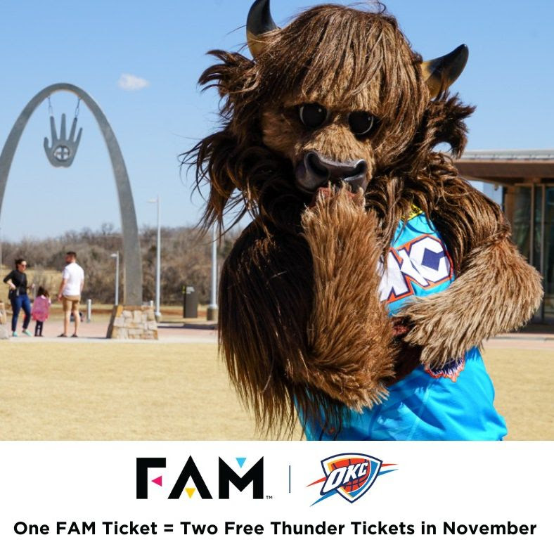 The First Americans Museum (FAM) and the Oklahoma City Thunder have partnered to celebrate Native American Heritage Month and encourage visitation to the museum located at 659 First Americans Blvd. During the month of November, patrons who purchase a ticket and visit FAM will receive a voucher for two complimentary tickets to select a Thunder home game at the Paycom Center.