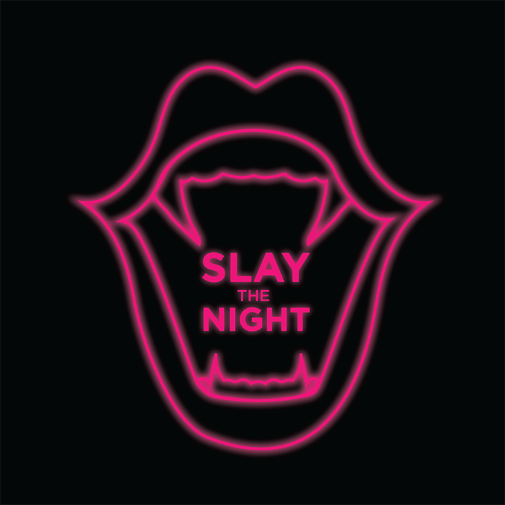 Image: Promotional image for Slay the Night: A Halloween Buffy Bash with Femme Film. Designed by Ravyn Foltz.
