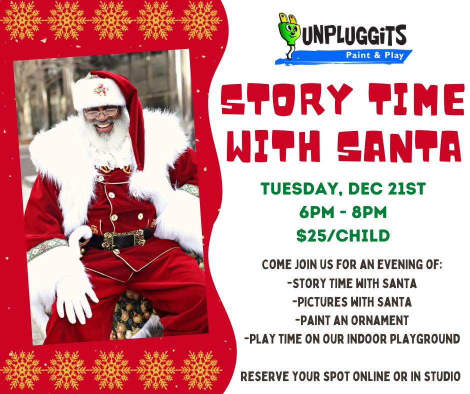 Features storytime and the chance to meet Santa and pose for pictures. Attendees can also paint and ornament and play on the indoor playground.