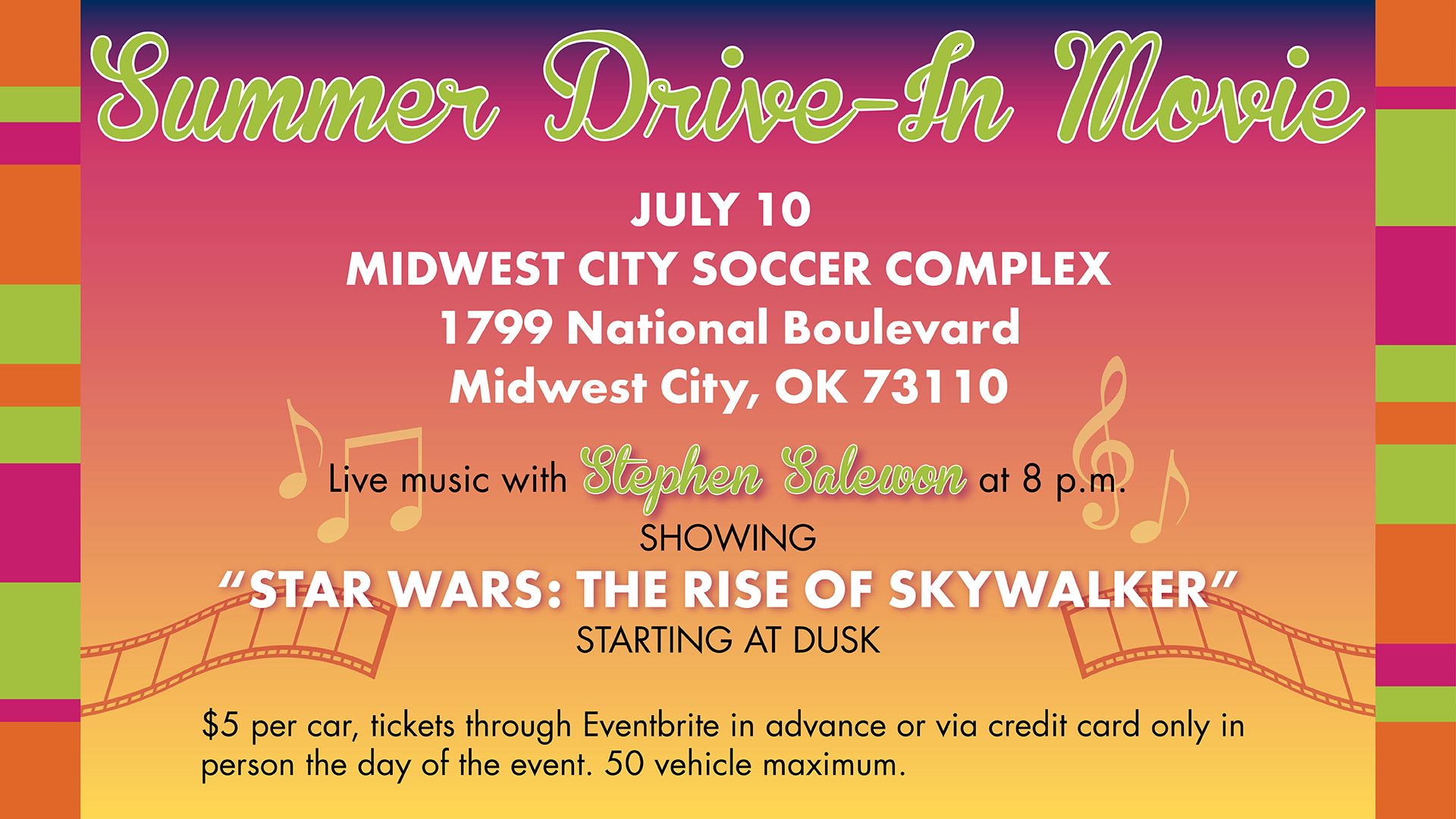 Features live music from Stephen Salewon and an outdoor screening of Star Wars: Rise of Skywalker. Snacks will be available for purchase.