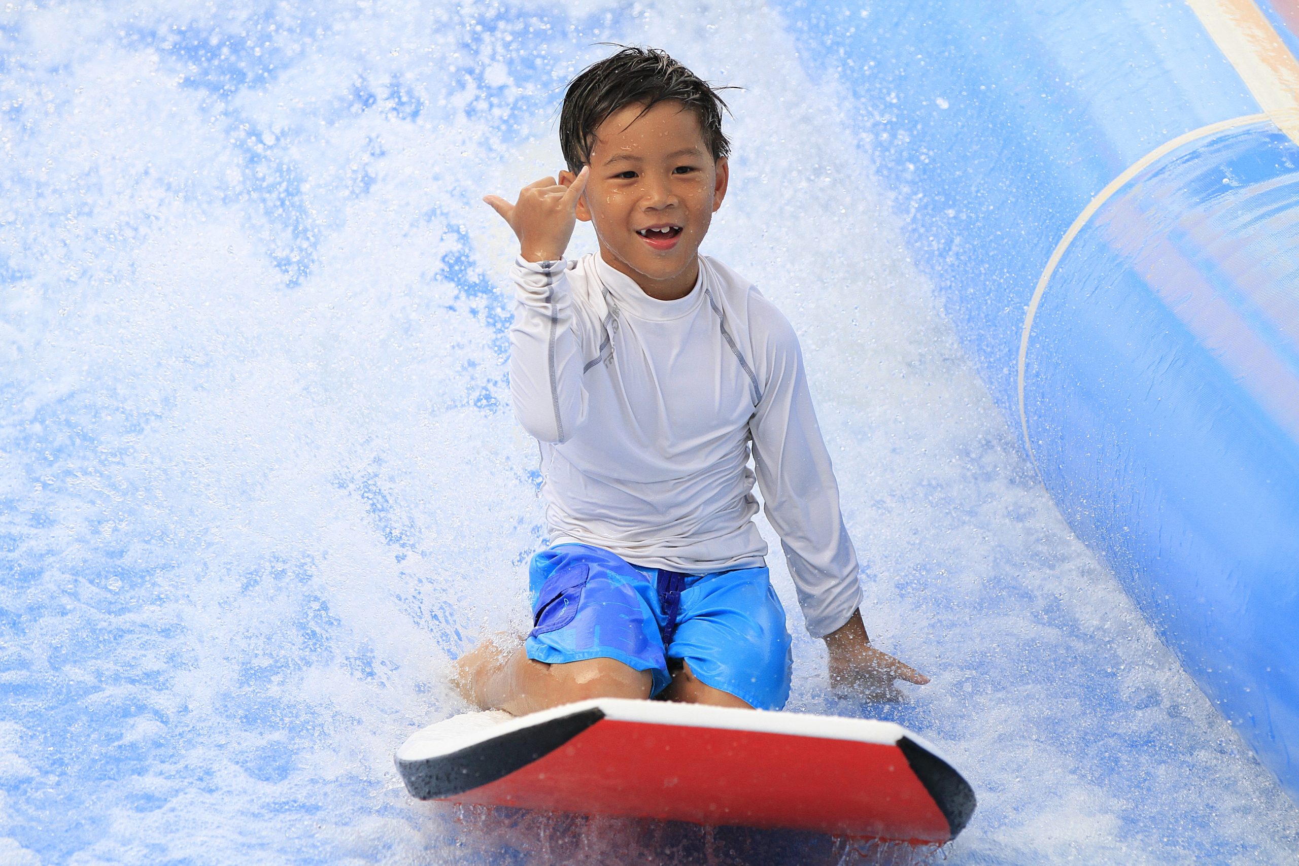 Features bodyboarding, where participants surf the wave lying on the board, and flowboarding, where participants surf on their knees or standing.