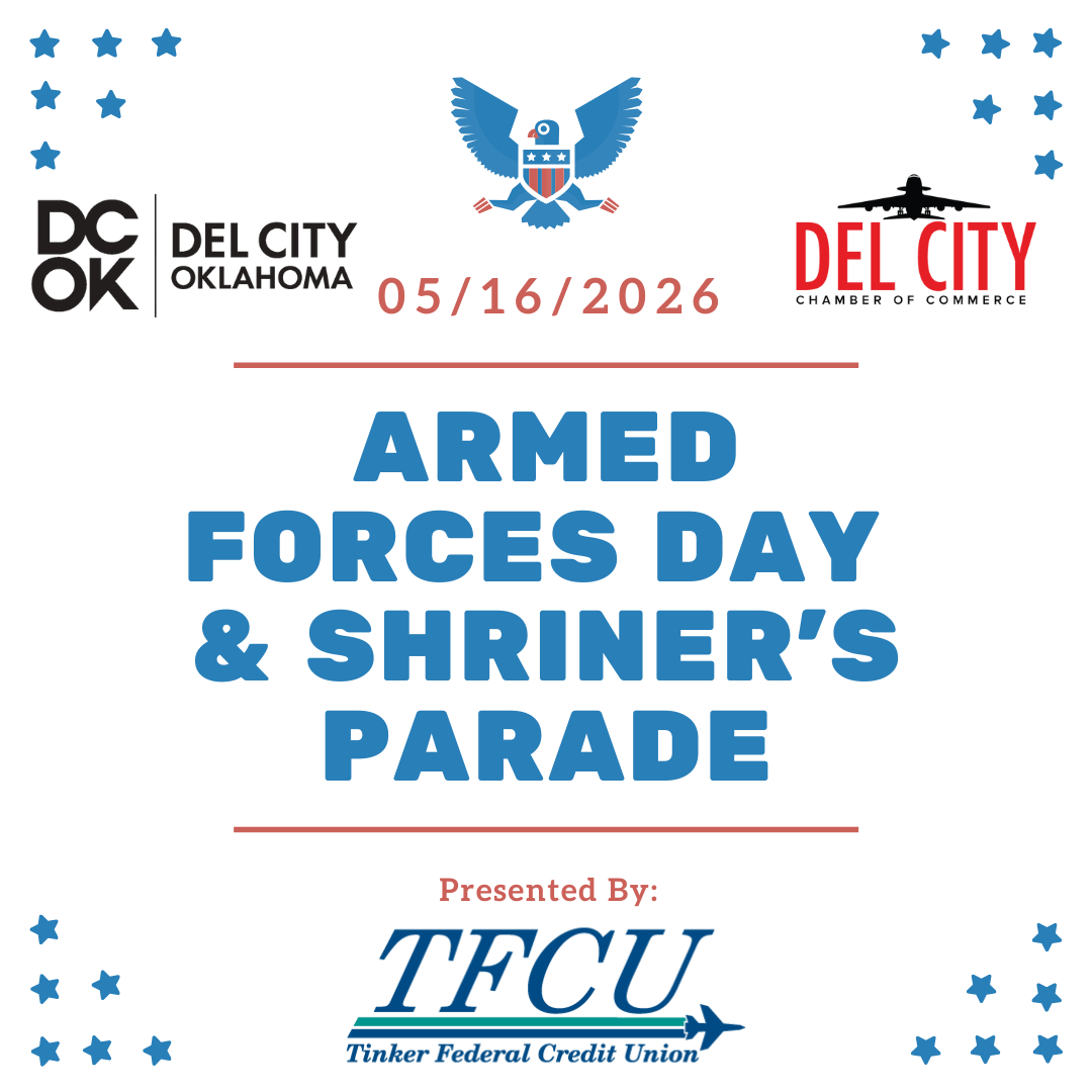 We are excited to announce the 39th Annual Armed Forces Day & Shriner’s Parade on May 16th, 2026 presented by Tinker Federal Credit Union! The Del City Chamber is looking forward to celebrating our amazing U.S. Armed Forces. Be sure to sign-up to be in this years parade as we show our appreciation for our service men and women.