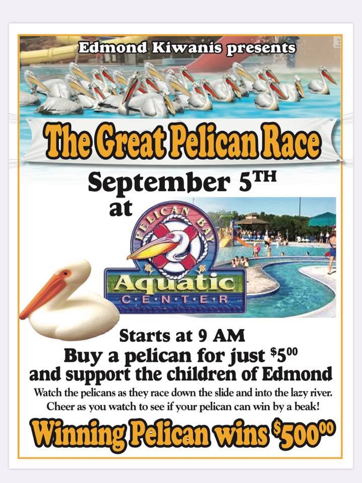 Features a fun pelican race benefiting the Edmond Kiwanis' educational and youth community projects. Racers have the opporunity to win $500.