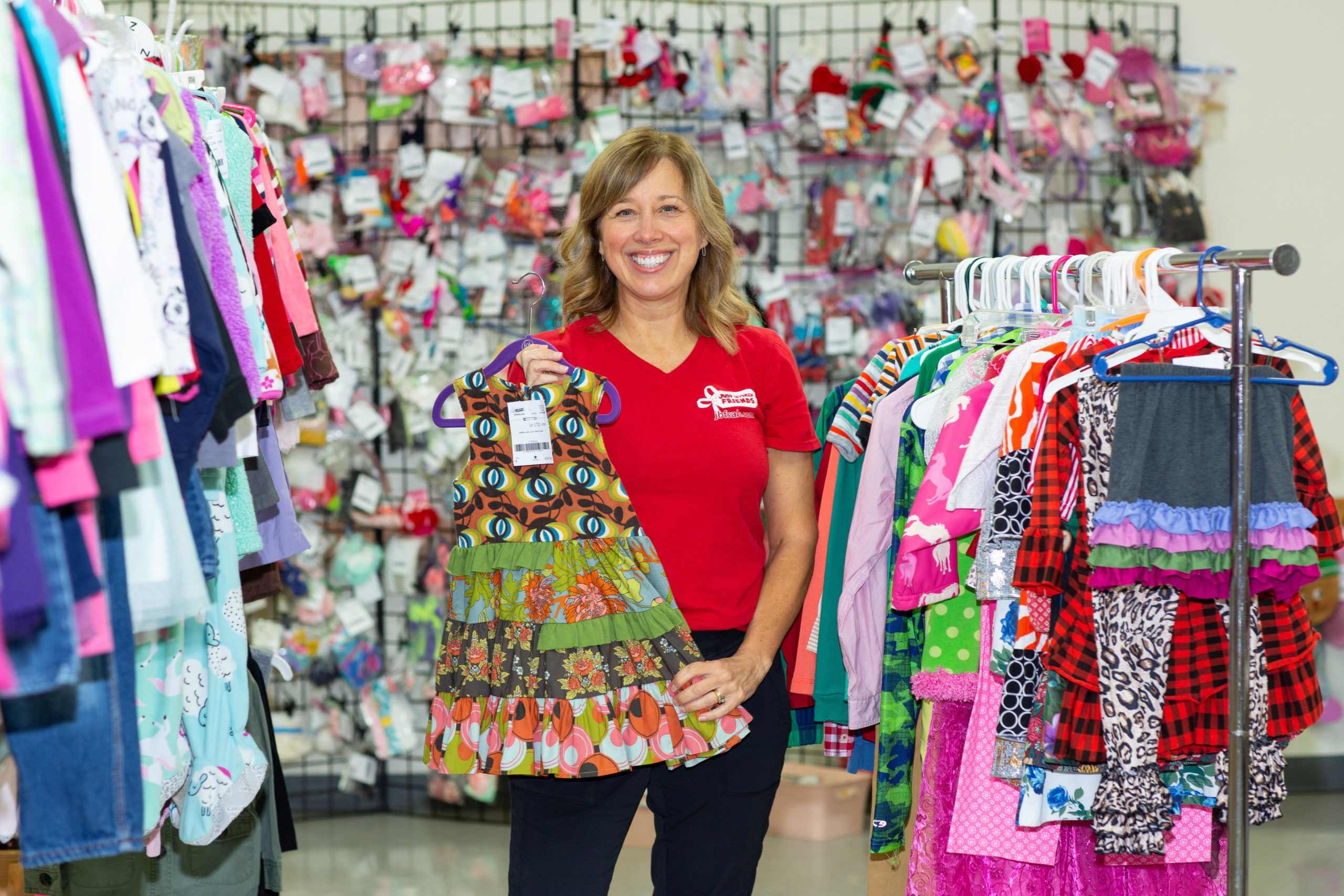 Kathy is also proud there is a philanthropic arm through JBF that provides cash and in-kind donations to nonprofits such as crisis shelters and community clothing closets across the country, and she is quick to say that, thanks to the JBF owners and consignors nationwide, the donations have amounted to over $32 million!