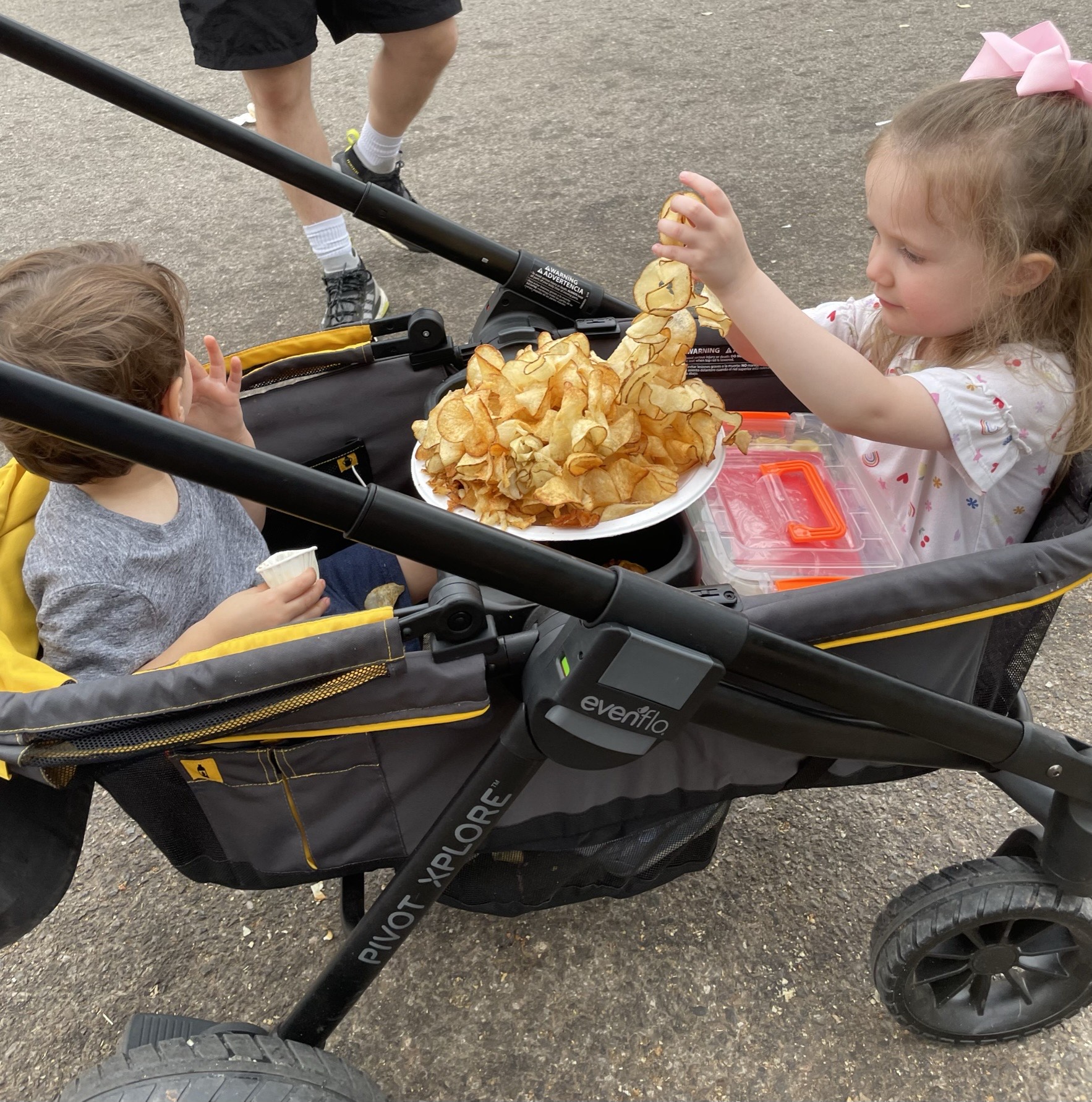 My family and I are obsessed with our Evenflo wagon. Our favorite part is the trays in the middle–the perfect place to put those delicious State Fair Snacks!