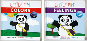 - Little Pim Feelings and Colors (Abrams, $9 each) by Julia Pimsleur Levine feature panda Little Pim as he explores the worlds of colors and feelings in English, Spanish and French. These interactive books feature tabs to pull and flaps to lift to search for the items mentioned in the story.