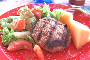 If you are watching your portion size or concerned about caloric intake; place the patty right on top of the salad rather than chopping them up and tossing it all together. That way you know exactly how much burger you're eating. For those of us who love burgers and meat in general it's easy to get carried away.