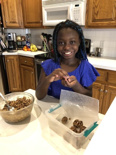 I like to make things in the kitchen so sometimes my mom and I make the After-School Banana Bread from the Magnolia Table cookbook or Energy Bites from a recipe she found on @blessthismessblog. We’ve included the recipes to share!