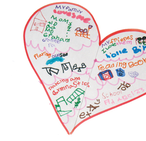A heart map is a visual reminder of what you love and care about. To create yours, draw a large heart on a piece of paper. Within and around the heart, use your imagination and create spaces for things that are important to you—people, places, activities, and memories. Use words, drawings or a combination of the two to fill your heart completely.