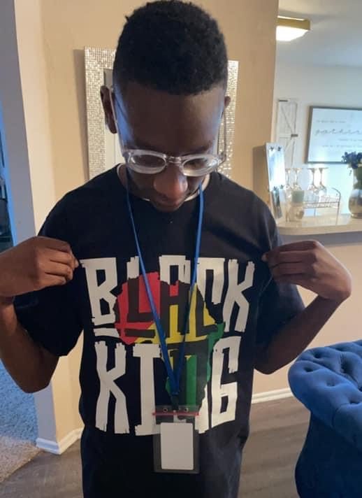 Latrell attends Heartland Middle School, where the family says Black History Month has not been taught or celebrated this year. But that hasn’t diminished Latrell’s pride in his heritage, and that includes wearing his new Black King shirt to school.