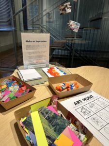 And as a bonus for younger visitors, a corner of the exhibit invites guests to create a piece of art themselves. Materials and instructions encourage visitors to make a collage that can either be left at the museum for other guests to enjoy or taken home to display.