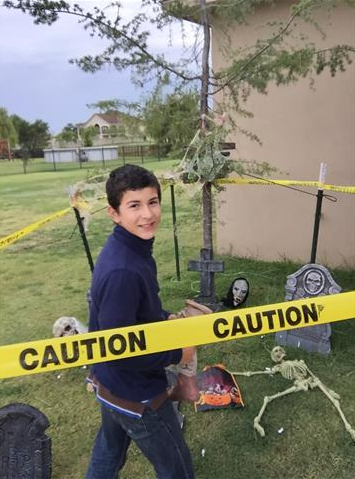 different ways. Sometimes, it means getting very creative. Building on a family tradition, 11-year-old Edmond resident Ben got the idea to transform something he loves into a way to improve his community, specifically his school. When Ben’s dad, Jason, got too old for traditional trick-or-treating, his family started a tradition that has lasted many years. The family crafts their home into a haunted house.