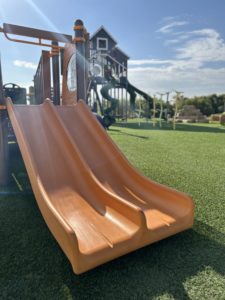 likely be more interested in the slide, the faux boulders, playing tag and making up their own rules for massive games of chase.