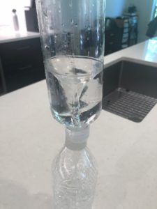 - Turn the full water bottle over and spin it again to get the water to spin in a funnel shape (called a vortex)