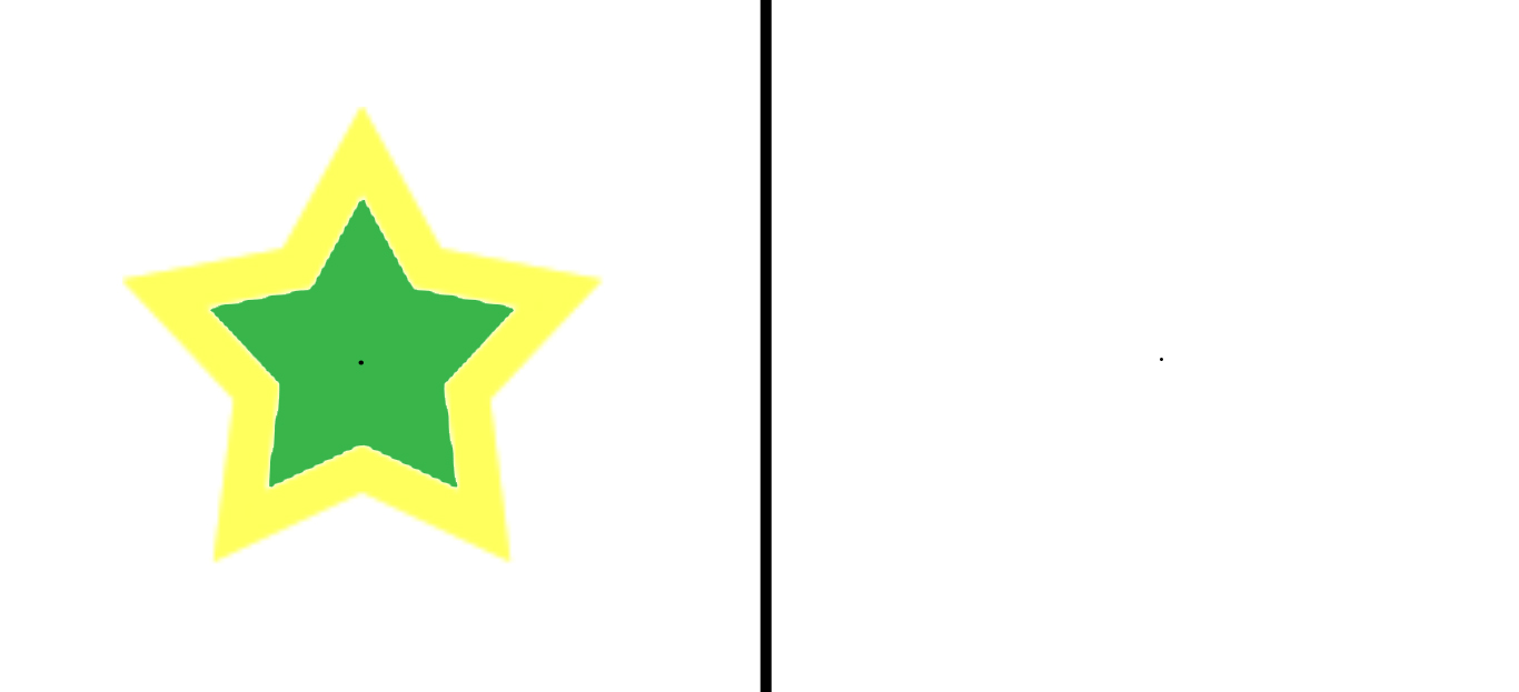 - A drawing of an object (a star, a heart, etc) that has a yellow border, a green interior, and a black dot in the center.