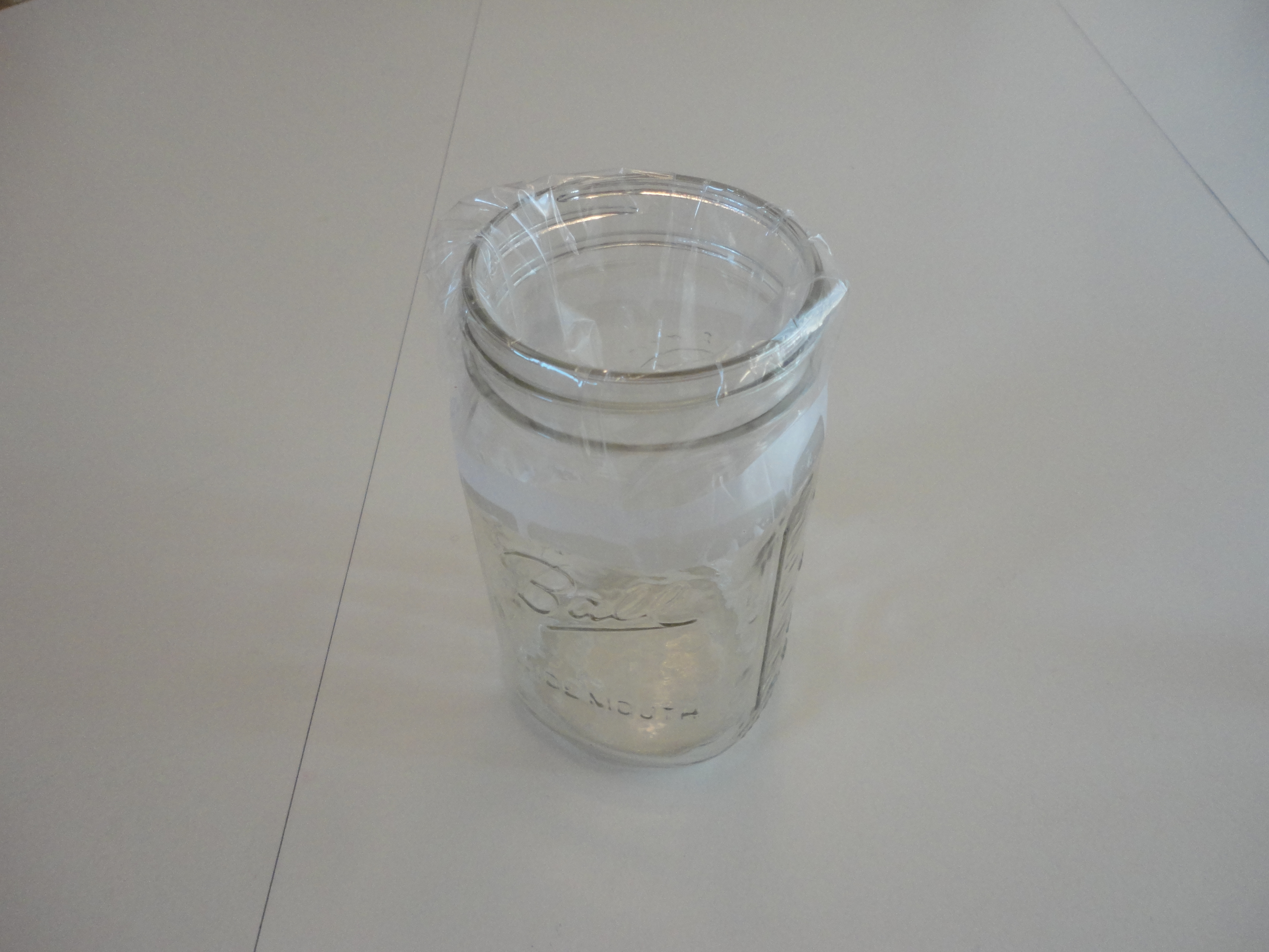 Tape the plastic bag around the edge of the jar lid to make it airtight.