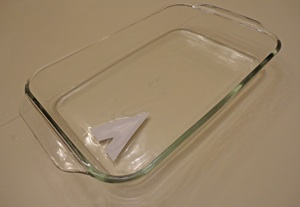 A flat tray about one inch thick (a cookie sheet or a cake pan works), water, an index card, liquid or bar soap, scissors.