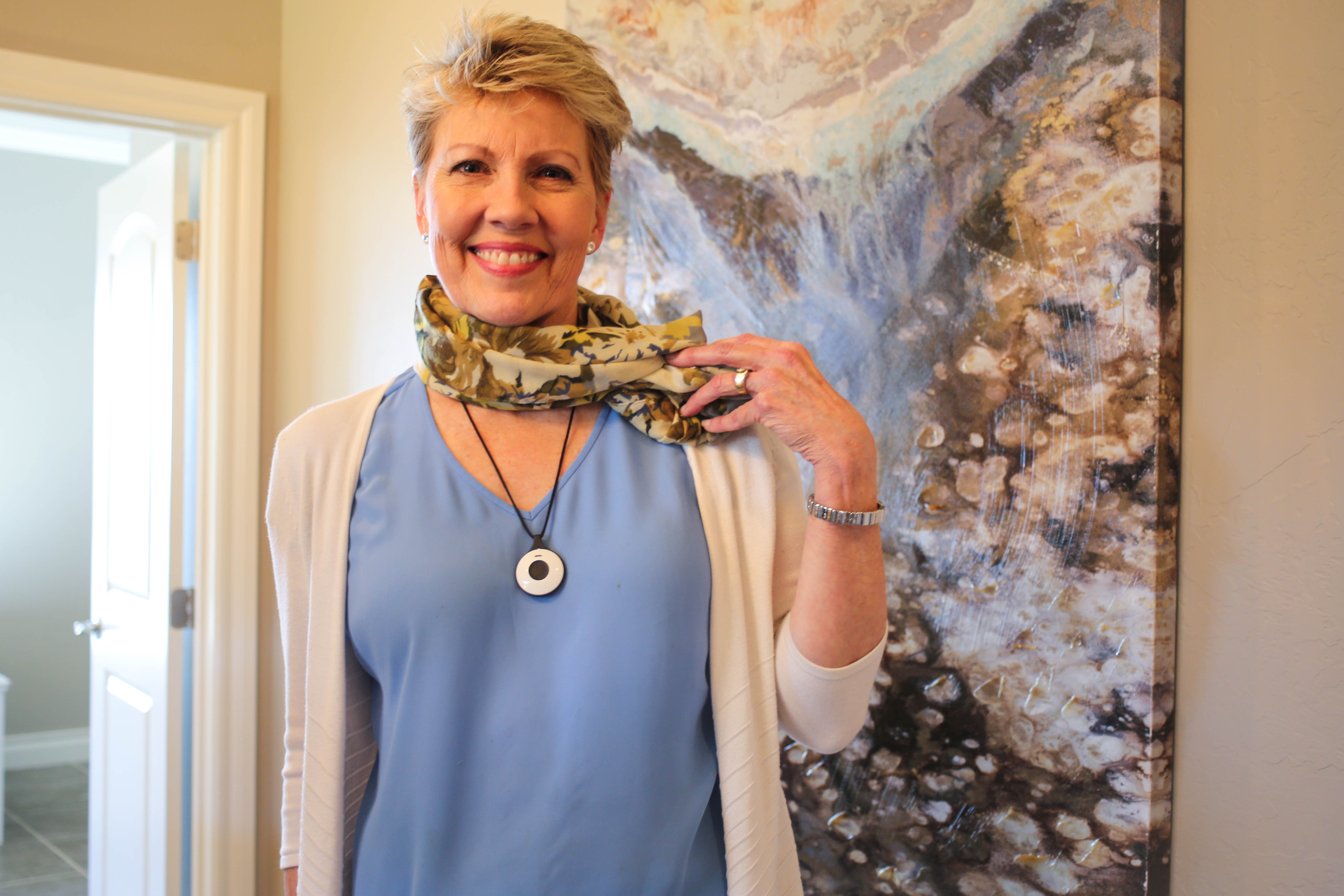 The pendant will detect a fall and automatically trigger a call to a Cox Communication specialist for help. If the senior cannot answer the specialist or communicates they need help, the specialist will call 911 as well as the family. If there is another type of emergency, the wearer can push the button on the pendant and a call will be placed to a Cox Communication specialist. The Cox pendant is the smallest and lightest on the market and is waterproof, making it convenient and comfortable for constant wearing.