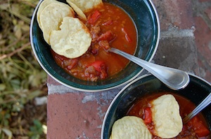 This recipe makes enough for 8 to 10 servings so I froze half so when we're snowed in we I can easily reheat and warm everybody up. Serve this with corn chips and a wool sweater.