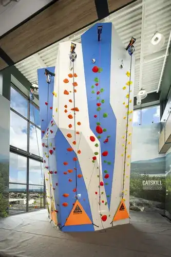 Rockwall camp allows kids to become more comfortable on the climbing wall, which is designed for beginners, with easy routes close to the ground and slightly trickier paths for kids who want to stretch themselves.